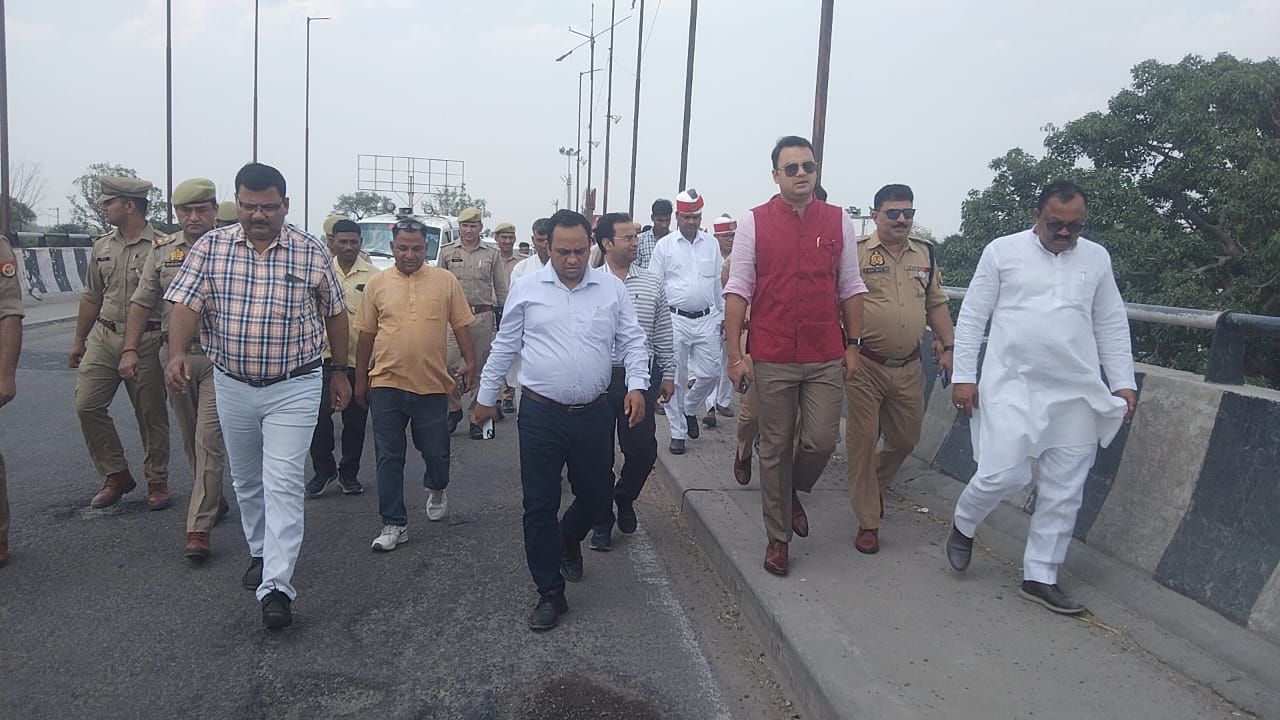 फ्लाईओवर का निरीक्षण – कछला घाट पुल के ऊपर बने फ्लाईओवर से संपूर्ण क्षेत्र का अवलोकन कर अधिकारियों को दिशा-निर्देश दिए गए